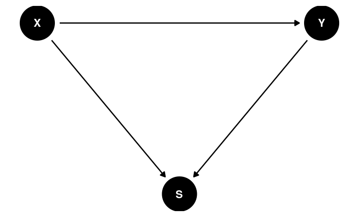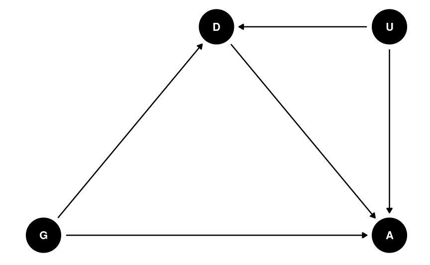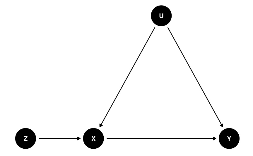 library(dagitty)dag4 <- dagitty("dag{ X -> Y; W1 -> X; U -> W2; W2 -> X; W1 -> Y; U -> Y}")latents(dag4) <- "U"adjustmentSets(dag4, exposure = "X", outcome = "Y", effect = "direct")